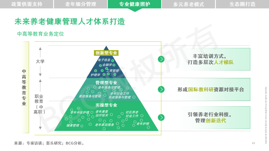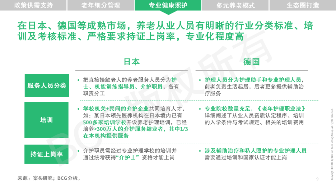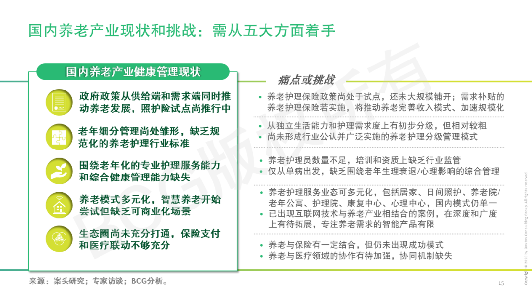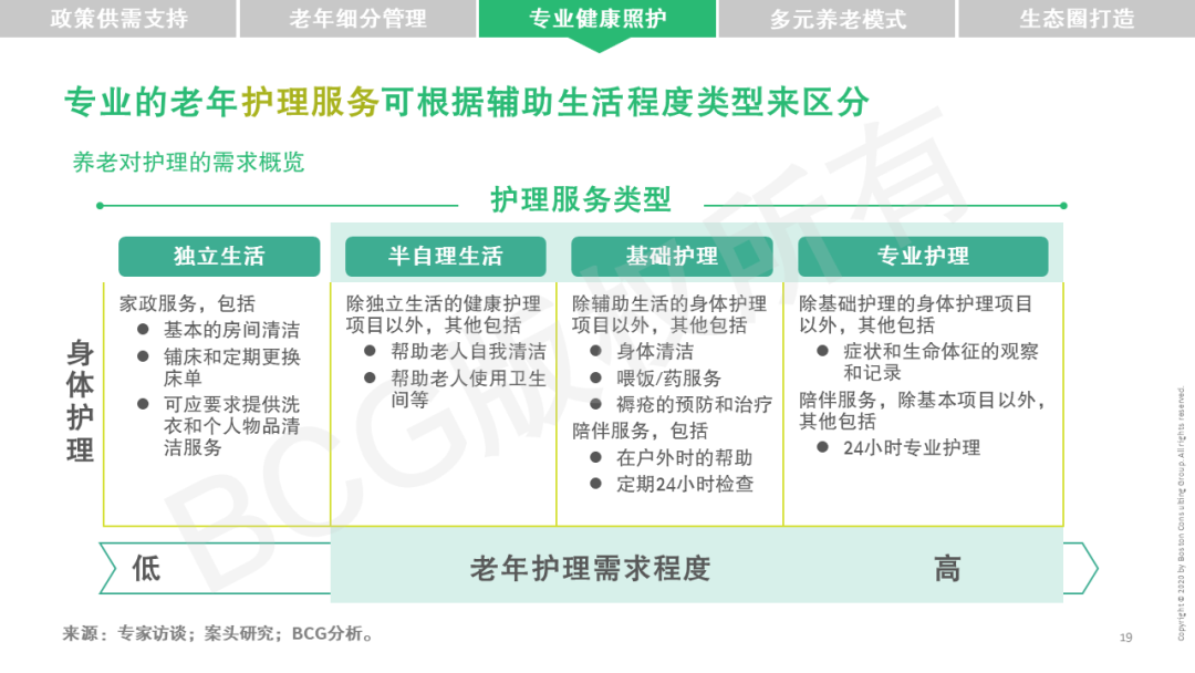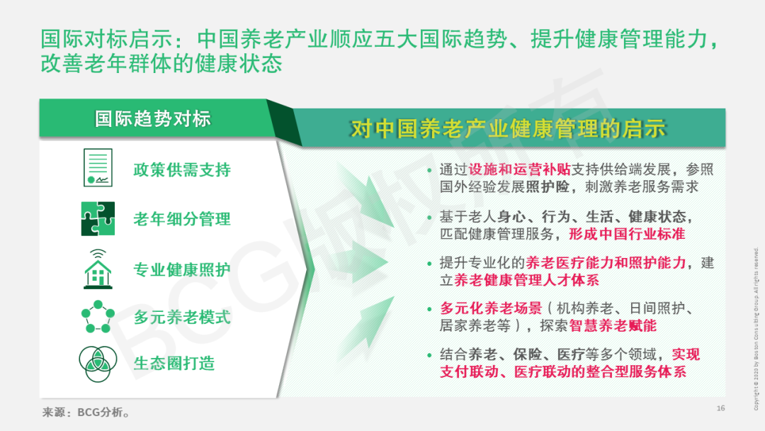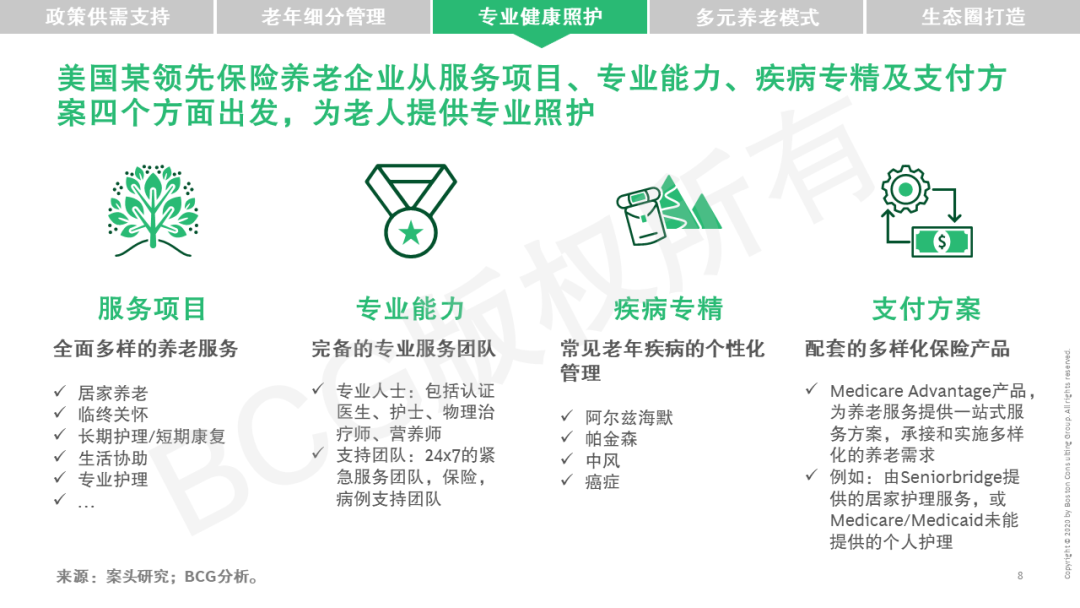 在此背景下,BCG对国际养老护理市场和领先养老产业最佳实践进行深入研究,为国内养老产业在健康管理方面提供借鉴和启示,致力于助推中国养老市场蓬勃发展。